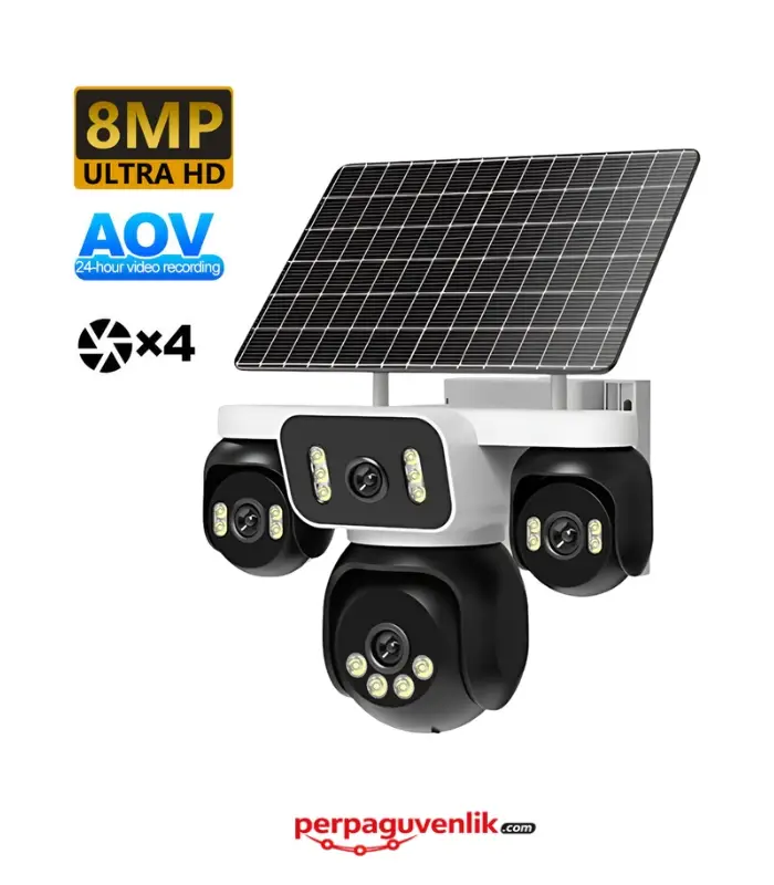 Hieasy 4 Lens 4G 8MP Güneş Panelli Kablosuz Güvenlik Kamerası